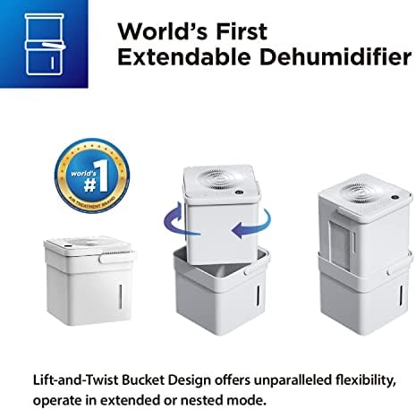 Midea Cube 20 Pint Dehumidifier for Basement and Rooms at Home for up to 1,500 Sq. Ft., Smart Control, Works with Alexa (White), Drain Hose Included, ENERGY STAR Most Efficient 2022The Midea Cube dehumidifier has a unique lift-and-twist design that offers unparalleled flexibility and capacity: when operating in extended form, it has up to 3 times more water tank capacity than traditional dehumidifiers and can run longer without the hassle of frequently emptying the tank; when in nested or drain form, the unit is half the size allowing compact storage or flexible draining. It can fit into most rooms and maintain the desired humidity level in your home. The patented sensor and wi-fi enabled app allow you to monitor the humidity and water level, all at your fingertips. With multi-directional air intake and up to three different fan speeds, it is powerful enough to dehumidify your room, and quiet enough that you'll forget it's even there.Midea Cube 35 Pint Dehumidifier for Basement and Rooms at Home for up to 3,500 Sq. Ft., Smart Control, Works with Alexa (White), Drain Hose Included, ENERGY STAR Most Efficient 2022The Midea Cube dehumidifier has a unique lift-and-twist design that offers unparalleled flexibility and capacity: when operating in extended form, it has up to 3 times more water tank capacity than traditional dehumidifiers and can run longer without the hassle of frequently emptying the tank; when in nested or drain form, the unit is half the size allowing compact storage or flexible draining. It can fit into most rooms and maintain the desired humidity level in your home. The patented sensor and wi-fi enabled app allow you to monitor the humidity and water level, all at your fingertips. With multi-directional air intake and up to three different fan speeds, it is powerful enough to dehumidify your room, and quiet enough that you'll forget it's even there.