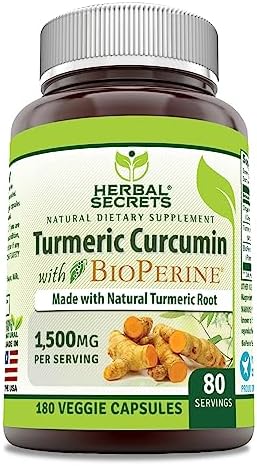 Herbal Secrets Turmeric Curcumin with Bioperine 1500 Mg 180 Veggie Capsules Supplement | Non-GMO | Gluten Free | Made in USA