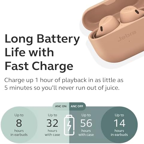 - 56-HOUR BATTERY LIFE Boasting up to 56 hours with ANC off (32 hours ANC on) with the earbuds + sleek charging case, and the fast charge feature, these earbuds allow you to never worry about being caught out by low battery again.