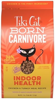 Tiki Cat Born Carnivore High Protein, Indoor Health, Chicken and Turkey Meal Recipe, Grain-Free Baked Kibble to Maximize Nutrients, Dry Cat Food, 3 lb. Bag