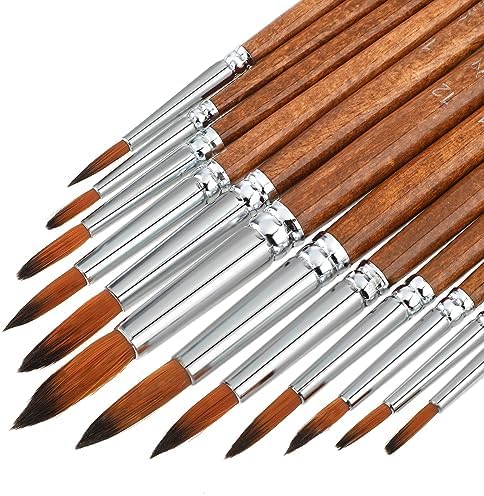 Thinp Watercolor Painting Brush Set 12Pcs Round Pointed Tip Artist Paint Brushes Professional Detail Paint Brushes for Watercolor Acrylics Oil