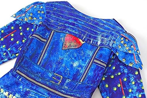 WonderBabe Descendants Evie Costume Halloween Cosplay Evie Dress up Zipper Jacket Long Sleeve Dress Size 9-10t,Blue