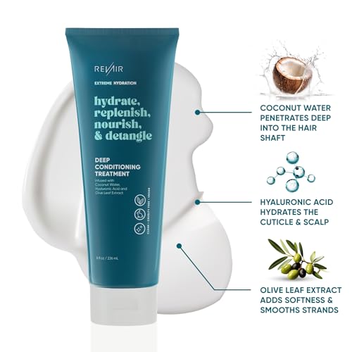 REVAIR Deep Conditioning Hair Treatment - Hydrating Hair Mask for Dry Damaged Hair - Coconut Water, Hyaluronic Acid & Olive Leaf Extract - Sulfate-Free, Paraben-Free, Vegan & Cruelty Free (8 Fl Oz)