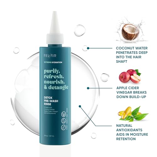 REVAIR Detox Pre-Wash Apple Cider Vinegar Hair Rinse - Pre Shampoo Treatment for Hair - Remove Build-Up & Revive Curly/Coily Strands - Coconut Water Scalp Cleanser - Vegan & Cruelty Free (8 Fl Oz)