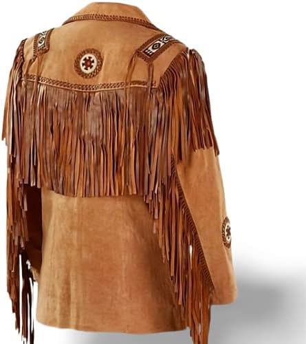 Chaquetas de Cuero de Vaquero para Hombre - Chaqueta Vintage de Estilo Occidental Artesanada con Franjas Indígenas Americanas