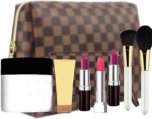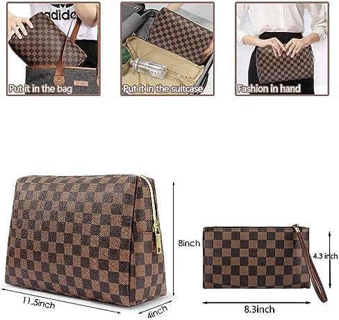 Makeup Bag, Cosmetic Bag, Portable Leather Large Checkered Makeup Bag, 2 Pack Large Capacity Travel Cosmetic Bag for Women, Lightweight Design and Waterproof Toiletries Bag Christmas Gifts