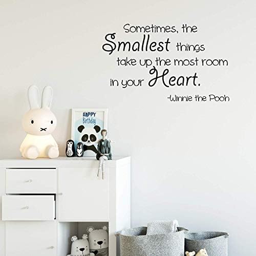 - Our high quality inspirational vinyl decal design "Sometimes the Smallest Things Take up the Most Room in Our Heart - Winnie the Pooh" adhesive design comes in 18 inches by 30 inches. The pictures are for display and inspiration only. All of our vinyl wall decals are manufactured with premium industrial grade Lutema self-adhesive vinyls.