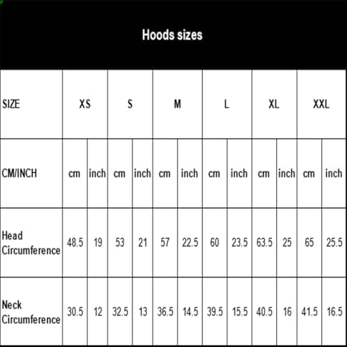 Material: 100% natural Latex Rubber Size: XS: 48.5cm(head circumference), 30.5cm(neck circumference) S : 53cm(head circumference), 32.5cm(neck circumference) M : 57cm(head circumference), 36.5cm(neck circumference) L : 60cm(head circumference), 39.5cm(neck circumference) XL : 63.5cm(head circumference), 40.5cm(neck circumference) XXL : 65cm(head circumference), 41.5cm(neck circumference) If you want to customize size, you just need to leave a message to tell us your actual size when placing order. Color: Please look at the color chart above. If you want to customize color, you just need to leave a message to tell us your requirements when placing order. Thickness: The default thickness is 0.4mm, and the price you see is for 0.4mm. We also manufacture latex fabric in thickness 0.6mm,0.8mm and 1.0mm. The prices for different thicknesses are as follows: 0.6mm Add $8 0.8mm Add $15 1.0mm Add $20