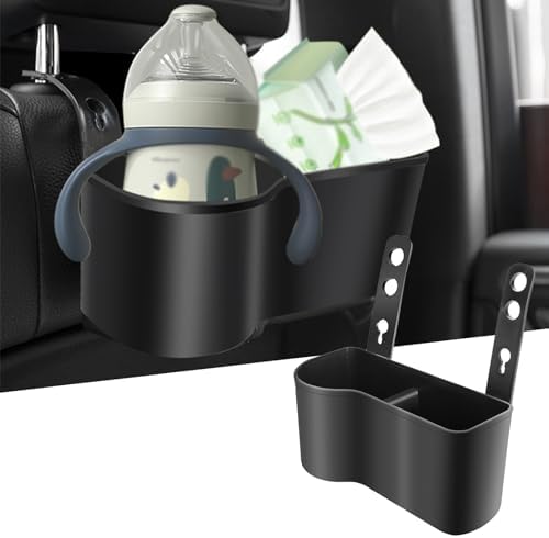 - Product Details: The package includes 1 x black seat hanging storage rack. The product size is 7.8" x 3.1" x 3.1". There are two compartments, and a specially designed cup holder. The water cup is not easy to spill when placed in it, and it is firmly fixed.