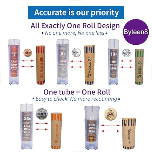 • Accurate is our priority: Each Coin Tube is Exactly One Roll. No One More, No One Less. Perfect if you use together with Byteen8 Coin Counter Tray Coin Sorter Tray. Very Effective for you to Sort & Wrap Loose Change at Home & Office. Great Time Saver for you!