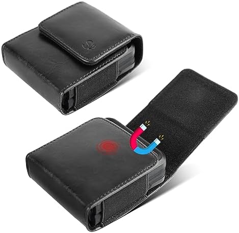 Case for Moto Razr+ / Galaxy Z Flip 5 4 3 Phone Case Leather Vertical Pouch [Belt Loop, Metal Clip, Magnetic Closure] for Samsung Z Flip 5 5G, Z Flip3 - Black
