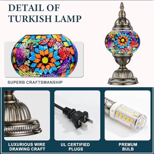 - 【100% HANDMADE & GIFT】 - The Turkish table lamps are handmade with perfect craftsmanship and complex processes. The light emitted is varied by the different colours of the lampshades. Both practicality and beauty make it a great gift for families, teachers, classmates, girlfriends and all your best friends.