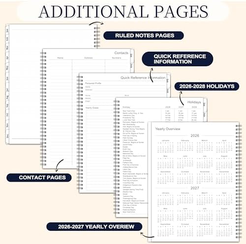 - 🖊GREAT GIFT CHOICE - With 12 monthly pages and 53 weekly pages, 12 monthly tabs, inner pocket, this 2026 calendar planner can be used for daily planning, writing notes, and carrying on-the-go to work, school, and home, which is a ideal gift choice for friends, students, teachers, kids, family members especially for busy person as birthday, anniversaries, Christmas, New Years gifts.