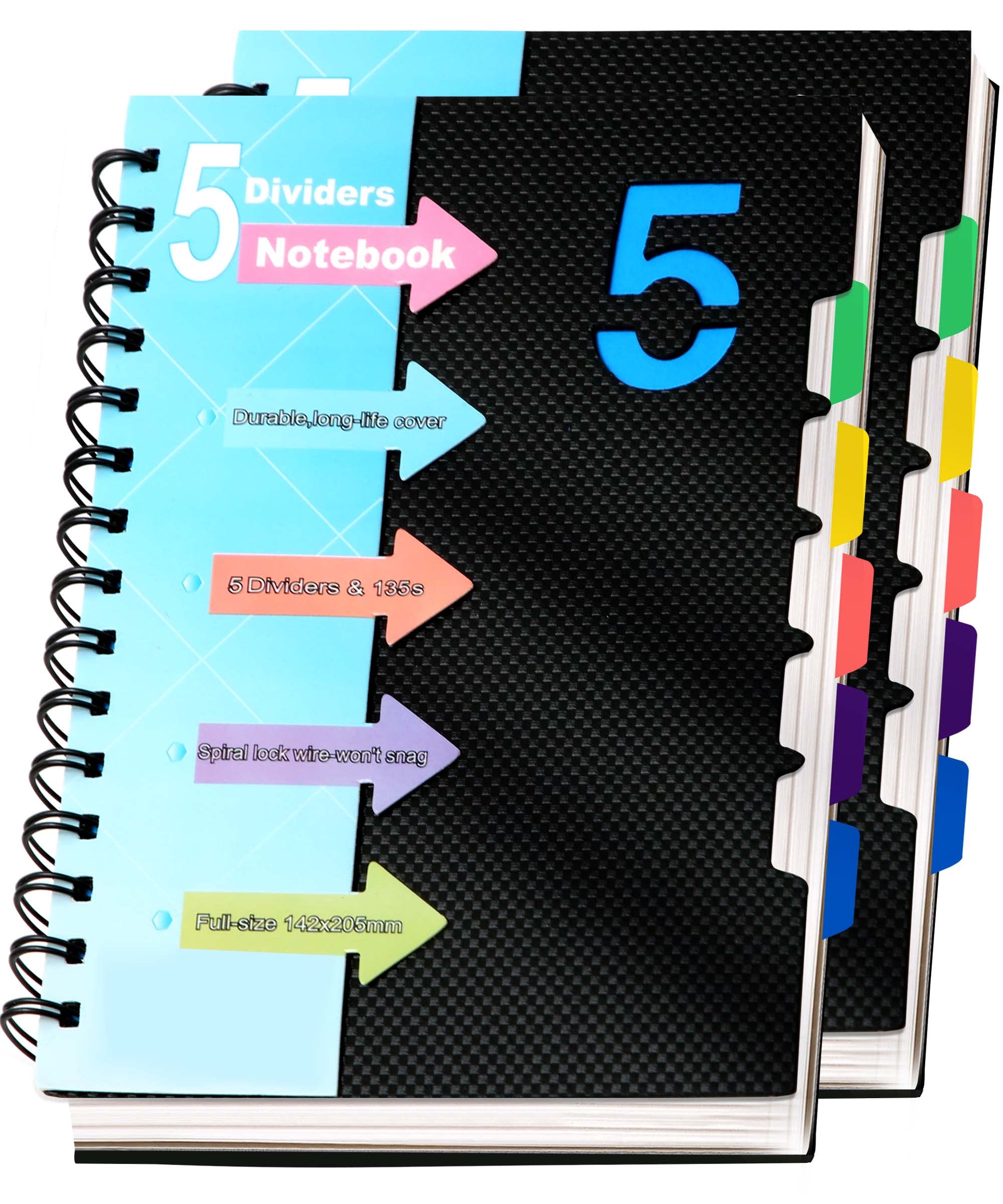 CAGIE 2 Pack 5 Subject Notebook with Dividers 220 Pages Spir...