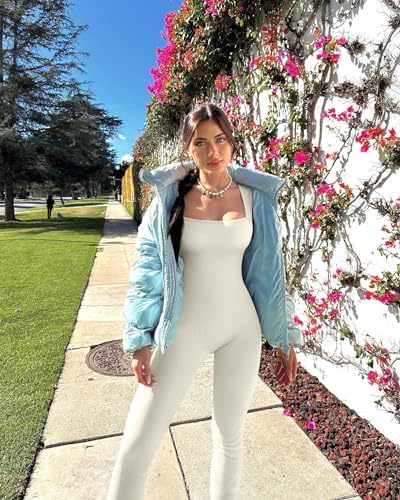 OQQ Women Yoga Jumpsuits Ribbed Strappy Sleeveless Tank Tops Exercise Bell Bottoms Flare Jumpsuits Beige