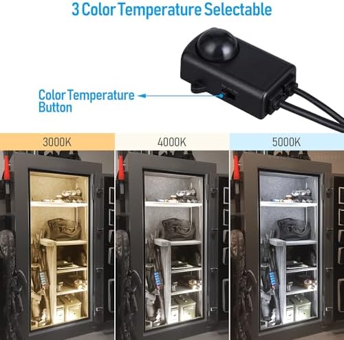 - Sensor Switch: Motion sensor detects movement within 26.25ft, turn on the lights immediately upon opening the safe and shut off after 5 minutes without movements. The kit including: (6) 12'' LED light bars + motion sensor + UL listed A/C power adapter + (5) extra extension cables + (12) hook and loop fasteners+ (15) screws