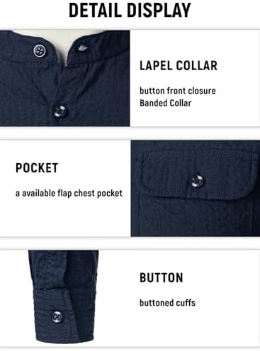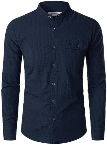 VATPAVE Men's Cotton Banded Collar Shirt Casual Button Down Long Sleeve Dress Shirts with Pocket