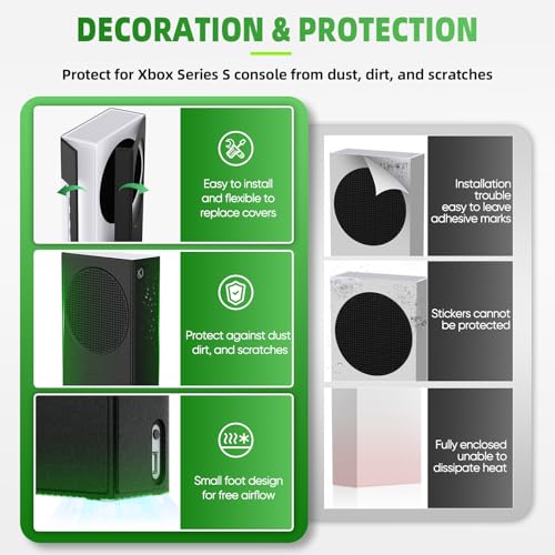 - 【Precision Fit for XSS】Add bold designs to your console with console wraps for Xbox Series S, designed to perfectly surround your XSS console , heat dissipation port and USB interface are not covered. The console wraps is waterproof and dustproof, effectively protects your console from everyday bumps, dust, scratches and fingerprints. Note: (Due to the thickness of the wraps, The charing stand will not suitable).