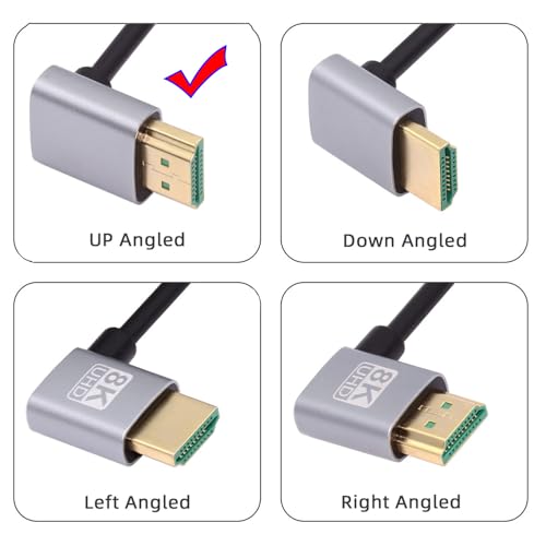 NFHK HDMI 2.1 Ultra Thin HDTV Cable 8K 4K Hyper Super Flexible Slim Cord Up Angled 90 Degree Type-A Male to Male for Computer HDTV 50CM