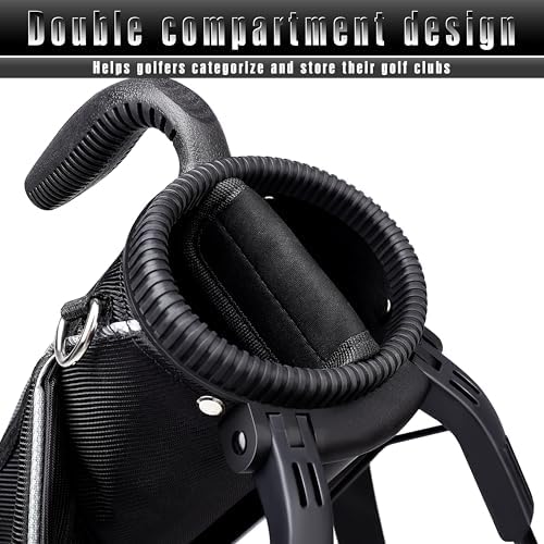 - Light Weight Design : The golf stand bag comes in at 3.4 lbs and its 3 way dividers surprisingly offers you enough space to accommodate your golf clubs. The bag for a evening sunday round or at an executive course.