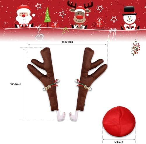 - What You Will Get: You will receive 2 elk antlers and 1 red nose ball. Elk antlers measure 5.5" x 16.1". The diameter of the red nose ball is 5.9 inches. Matching car decoration accessories can make your car more novel and cute.