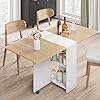 Space Saving Folding Dining Table with 2 Tier Storage-Extendable Drop Leaf Farmhouse Wood Kitchen Dining Room Tables Set for 4, Collapsible Expandable Rectangle Dinner Kitchen Office Furniture