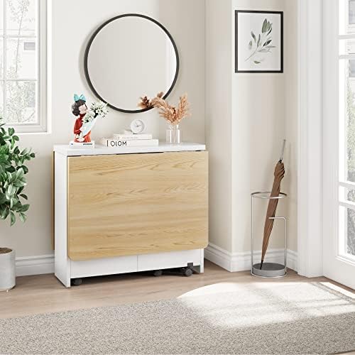 - 【Multipurpose Table】Easily folded and extended to meet your different needs. As a dining table it perfect fit for family of 4-6 when totally extended. Just folding one tabletop, it could as an office desk placed your computer, books, camera on the tabletop, or even as a entryway table when fully folded.