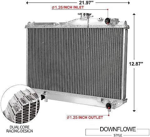 • Feature - This Aluminum Radiator is at least 40% more efficient than stock ones. Most importantly, it has a much higher capacity for coolant than stock ones, which means that your cooling system will be more efficient and will be more resistant to temperature surges in racing applications.
