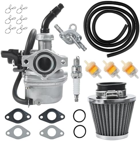 Fitment —PZ19 Carburetor Carb Air filter Gas fuel line hose with shut off valve petcock Kit for 50cc 70cc 90cc 110cc 125cc chinese kids atv four wheeler quad dirt pit bike go kart pocket rocket motor mini chopper moped motorcycle, such as: Roketa, Sunl, Taotao, Coolster, Apollo, Baja, X-Pro, Icebear, Kazuma, Vitacci, Buyang ,Coolsport, SSR, Sunl, Redcat, Kymco, Buyang, Kandi, Kayo, Peace Sports, Arctic Cat, Ace power, Loncin, AIM-EX, Yamah* Hond*. (NOT for GY6 Engine) Fitment —Fit Yamah* Raptor 90 atv,Arctic cat 90 atv, Kymco Mongoose 70s atv,Arctic cat DVX90 mini atv, Yamah* YFZ50 atv, Ace Power 125cc atv, Kayo 70 atv, Sunl 110 atv, Apollo Blazer 125cc atv, Kazuma Falcon 110 atv, Kayo fox 70 youth atv, Peace sports 110cc ATV, Kandi 110cc atv, Kandi KD-90GKG-2 90cc go kart, Tao Tao GK110 go kart,Coolster 70cc dirt bike,x-pro 125cc dirt bike, Hond* ST70 NH80 ST90 Trailsport 90 CT90 CT110 CT70 Trail XL70 XL75 TRX70 CRF50 CRF50F XR70 XZ100 dirt bike, Motovox MVX70 dirt bike,Baja 50 Dirt Runner DR49 DR50 DR70 DR90 Warrior 49 WR49 dirt bike, Baja BA90 atv, X15 X16 X17 X18 X19 X22 super bike,Icebear 125cc Ct70 motorcycle.