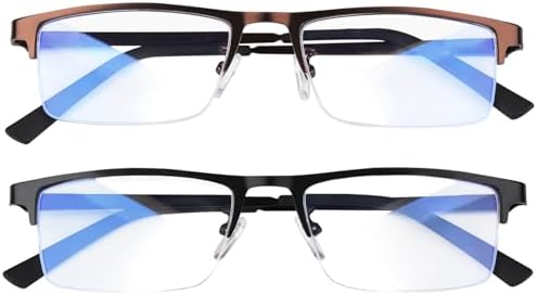 - 【Light Weight Readers】Our upgraded Blue Light Blocking Glasses have thinner metal frame, which makes them more lightweight and fashionable. Lightweight metal frame glasses with spring hinges ensure a comfortable fit without pinching the face. Classic rectangular half-frame design, suitable for men and women, puts no pressure on the nose.