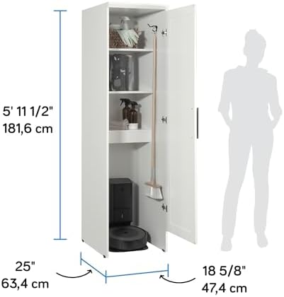 Sauder Homeplus Robot Vacuum Kitchen Pantry Storage Cabinet, Single Door with Adjustable Shelves, Laundry Organizer, in Soft White