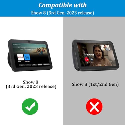 - Compatibility: The adjustable stand is only compatible with Echo Show 8 (3rd Gen, 2023 release). You can also put your iPhone 12/13/14/15 Series with magnetic case on it. NOT for Echo Show 8 (2nd Gen & 1st Gen). Only a desk stand, do NOT include the device