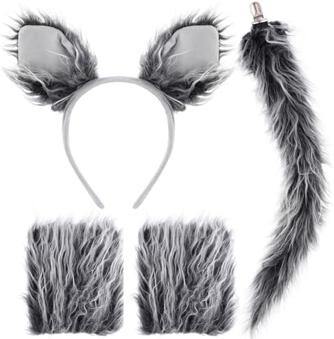 Dxhycc Wolf Costume Set Grey Wolf Ears Headband, Gloves and Tails for Halloween Dress-Up Accessory Kit