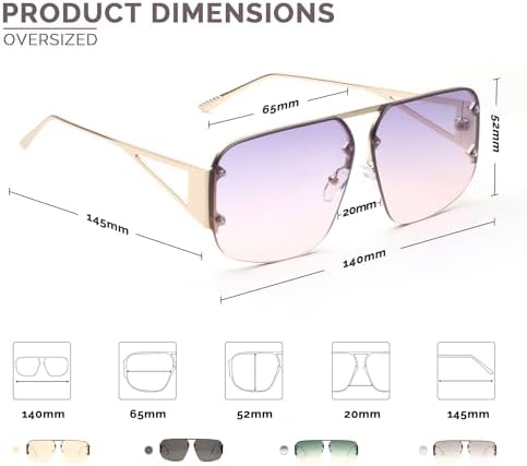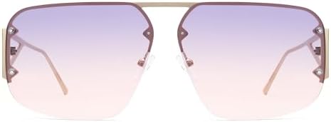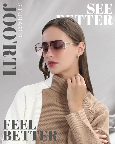 JOO'RTI Designer Aviator Rimless Sunglasses Mens Womens Oversized Trendy Metal Frame Shades Lentes De Sol Para Mujer