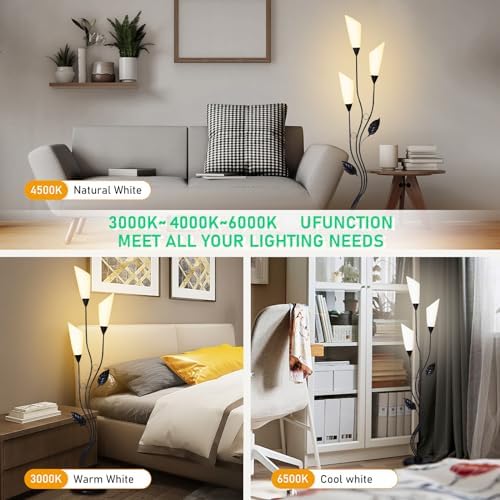- Adjustable Ambiance: Distinguishable from traditional floor lamps, this lamp features dimmable functionality. Control the light ambiance (3000K~6000K) seamlessly with a foot switch, catering to all your lighting needs and creating a beautiful and cozy atmosphere wherever the floor lamp is placed.