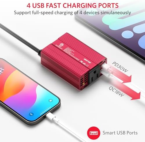 BESTEK [PD 30W&QC 3.0 18W USB Charger] 150W Car Power Inverter, DC 12V to 110V AC Converter Laptop Car Charger Outlet Adapter for car