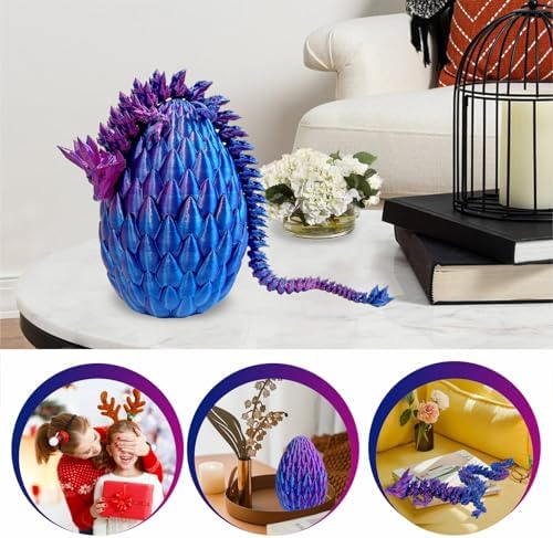 • PERFECT SIZE: The dragon egg measures 3.5 x 5 inches and fits comfortably in the palm of your hand, while the dragon itself stretches to an impressive 12 inches in length, making it perfect for display.The 3D printed dragon's head, torso, limbs, and feet are attached by sturdy hinges for flexible positioning and posing.