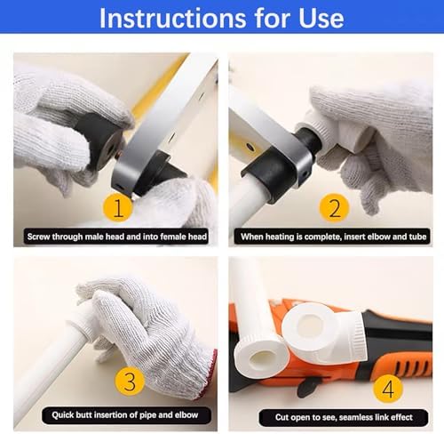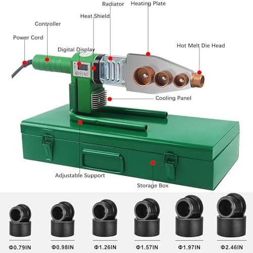 - 1.6 DIE HEAD:Suitable For Pipes Diameter 0.79"(20mm)/0.98"(25mm)/1.26"(32mm)/1.58"(40mm)/1.97"(50mm)/2.48"(63mm) can be welded to PPR, Pb, PE, PV, plastic and other materials, suitable for home, repair workshop or construction site.