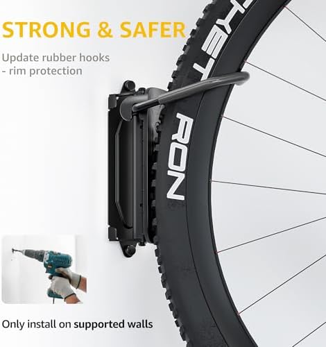 - 【Easy To Install】Garage bike rack simply installed, 5-minute installation, includes easy and detailed step-by step instructions. Wall mount bike rack comes with mounting screws for concrete and stud walls. IMPORTANT - DO NOT install on 'unsupported' wall surfaces such as plasterboard walls unless there is a strong wooden stud behind it.