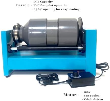 - DURABLE CONSTRUCTION: This tumbler is built to last. It features a heavy duty design that can handle the toughest materials, making it a reliable investment. It has a welded steel frame and is powder coated. It has rubber-coated steel rollers and comes with a heavy-duty motor.