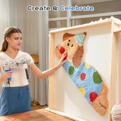 - Kit de Pistola y Recortadora de Tuftado: El kit de pistola de tuftado BESGEER incluye una pistola de tuftado, un kit de recortadora de alfombras, 20 rollos de hilo, una tela de tuftado de 39"X39", una tela de respaldo final antideslizante de 39"X35", y una caja de regalo. La pistola para alfombras puede hacer cualquier patrón que desees, y la recortadora de alfombras puede recortar extras para letras, esquinas redondeadas y detalles de bordes. Ideal para alfombras pequeñas a medianas. Este es el kit de tuftado más completo para principiantes en el mercado. Solo necesitas emparejar un marco de tuftado para comenzar tu trabajo DIY;