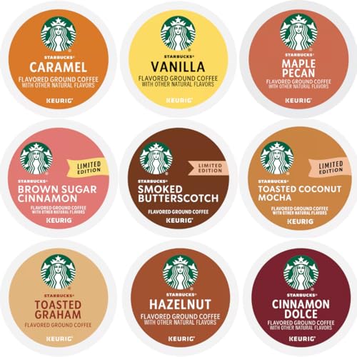 Starbucks K-Cups Flavored Sampler – Caramel, Vanilla, Maple Pecan, Peppermint Mocha, Cinnamon Dolce, Smoked Butterscotch, Toasted Graham, Hazelnut, And Toffeenut