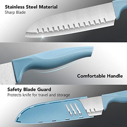 Dsmile 3Pcs 7 Inch Chef's Knive Sets Paring knives Japanese Chefs Knife Fruit and Vegetable Knife Stainless Steel Kitchen Utility Knives with Blade Guards