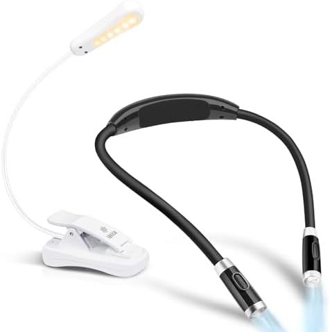 • [Ergonomic Design & Eye Caring] Our neck reading light is designed with your comfort in mind. The adjustable neck and head allow you to position the light at the perfect angle for your reading pleasure. Say goodbye to eye strain and discomfort as you enjoy your favorite books. The book light features advanced LED technology that emits a soft, flicker-free light. This reduces eye fatigue and minimizes the risk of eye strain, making it ideal for extended reading sessions.
