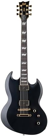 The ESP Viper-1000 is built at 24.75” scale with set-thru construction that allows smooth access to the highest frets, the Viper-1000 Vintage Black pairs a mahogany body with a three-piece thin u-shaped maple neck. Its Macassar ebony fingerboard has pearloid ESP flag inlays and 22 extra-jumbo stainless steel frets, maximizing the sweet spot for both the neck and bridge pickups to offer their ideal tones. Its premium gold hardware includes LTD locking tuners and a TonePros TOM bridge and tailpiece. The Viper-1000 includes a set of Fishman Fluence Modern Humbucker active pickups (ceramic in the bridge and alnico in the neck), with push-pull control to select voicings and gold covers to match this guitar’s noteworthy aesthetics. Each pickup offers two voices. With the ceramic bridge pickup, Voice 1 is the ultimate high-output ceramic humbucker bridge pickup tone… crisp, searing crunch, tight bass with no mud, and a growl. Voice 2 delivers modern passive attack performance that has superbly organic distortion characteristics with outstanding dynamics and response. The alnico neck pickup’s Voice 1 is Fishman’s modern active high-output tone, offering the ideal active alnico sound: full, round, and boosted, but with unprecedented articulation and dynamics. Voice 2 gives you the crisp, clean and fluid neck humbucker tone you’ve always wanted.