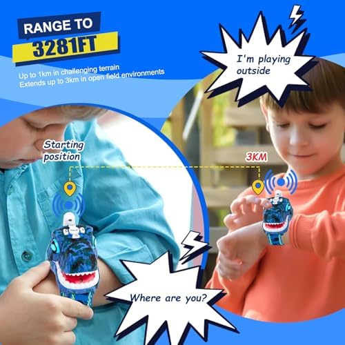 - Dinosaur-Themed Adventure: AZYFEI walkie talkies feature lifelike dinosaur head designs, a blue camouflage finish, and are designed specifically for boys and girls aged 3-12 who love dinosaurs and exciting adventures. They make an excellent gift choice full of fun and excitement
