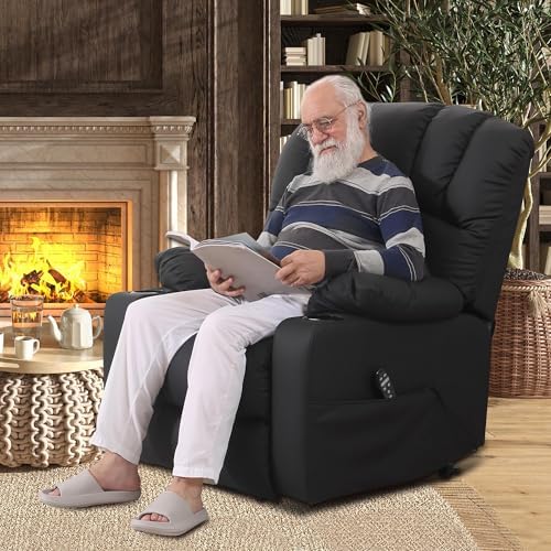 DURASPACE Power Lift Recliner Electric Lift Massage Recliner Chairs with Heat, Large Shell Faux Leather Backrest Lift Chair Recliners for Elderly, Seniors (Black)