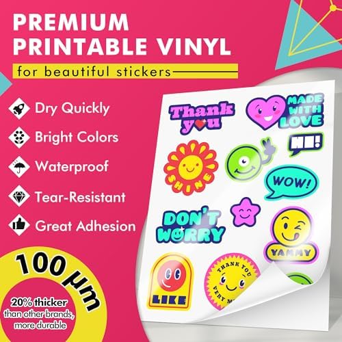 - Waterproof & Durable: Crafted from premium vinyl material, our sticker paper is water-resistant and ensures durability in various conditions. For full waterproofness and extended lifespan, apply laminate sheets or a sealer spray after printing.