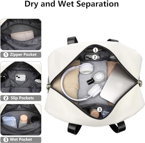- 【DRY WET SEPARATED GYM BAG】When you're at the beach, swimming or exercising, separate high-density waterproof material pockets help you separate dry and wet items. And large shoe compartment to keep inside organized
