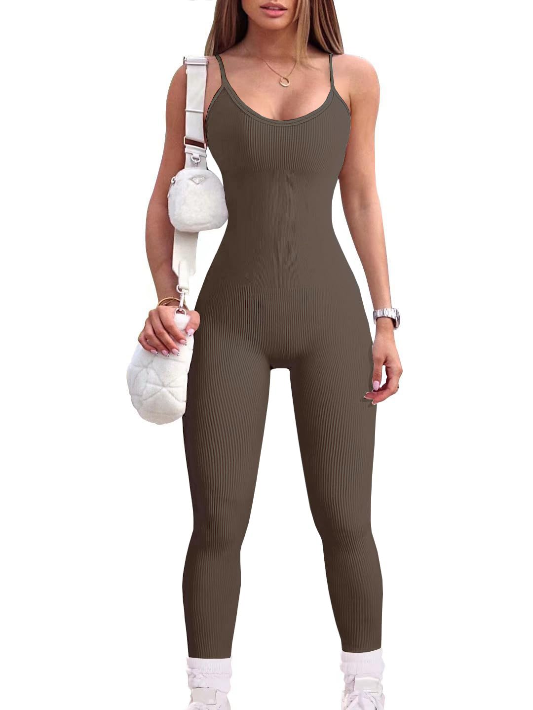 Women Workout Seamless Jumpsuit Yoga Ribbed Bodycon One Piec...